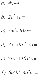 Si en todos los términos de un polinomio figura un factor común, dicho polinomio es igual al producto de ese factor por el polinomio que resulta al dividir cada término por ese factor.