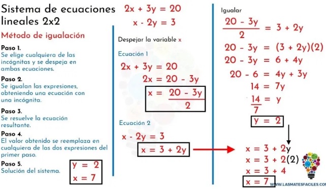 Recordemos que los Sistemas de Ecuaciones Lineales 2×2 son aquellos que se componen de dos ecuaciones con dos incógnitas, y existen varios métodos para llegar a su solución en caso de existir.