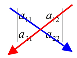 Nota el color azul mantiene el signo, mientras el color rojo cambia el signo y para finalizar realizamos la suma algebraica correspondiente y de esa manera obtenemos el valor numérico de una matriz 2x2.