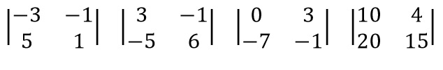 Determine el valor numérico de las siguientes matrices en hojas de cuadros, tome una fotografía y súbala dentro de su carpeta personal en la Unidad N 4.