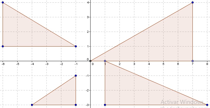 Determine la medida de la hipotenusa de los siguientes triángulos. Nota las medidas están en cm y en base a los cuadros de la gráfica.